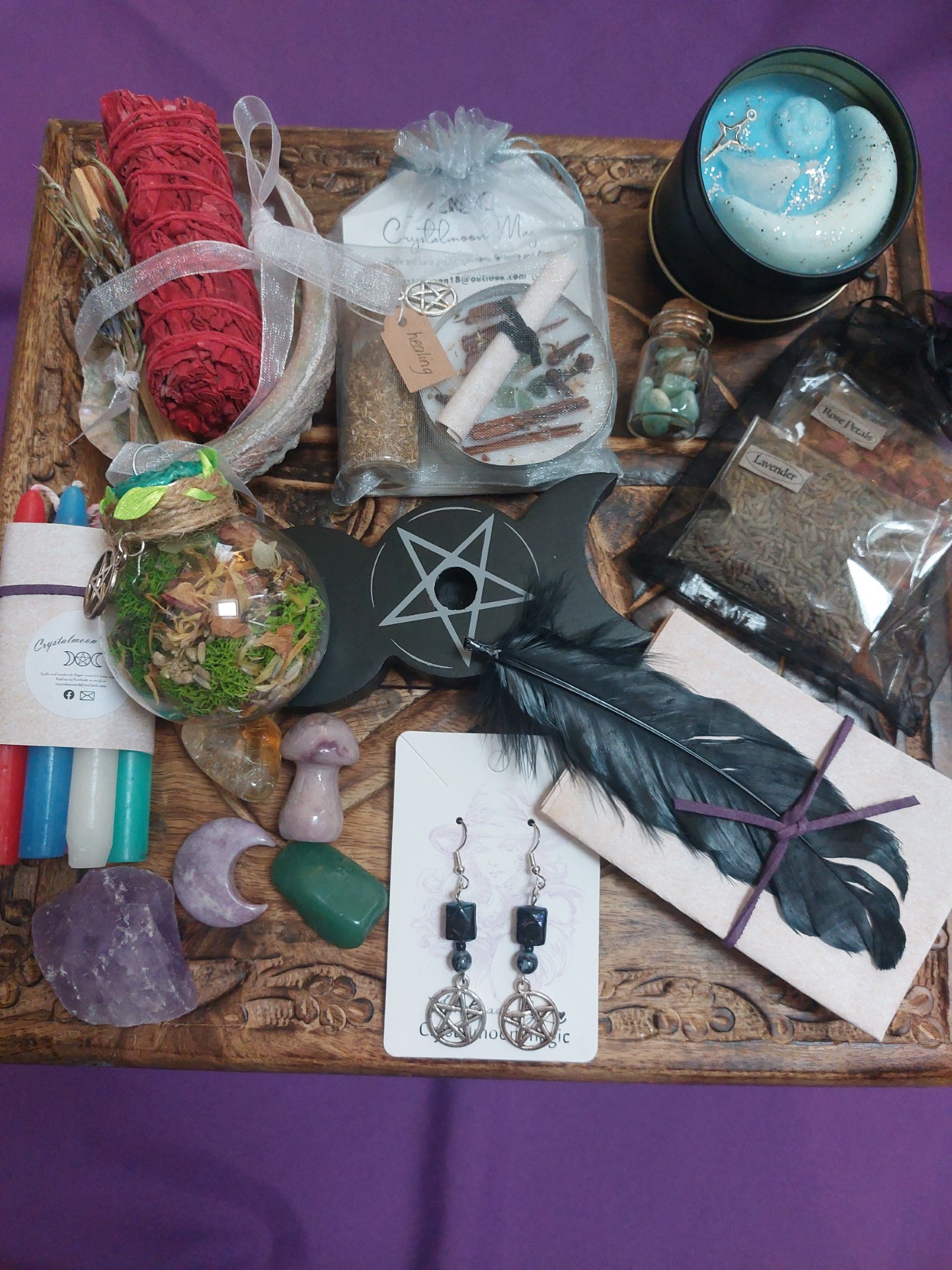This kit is beautifully presented in a triple moon keepsake box has everything a new or novice witch